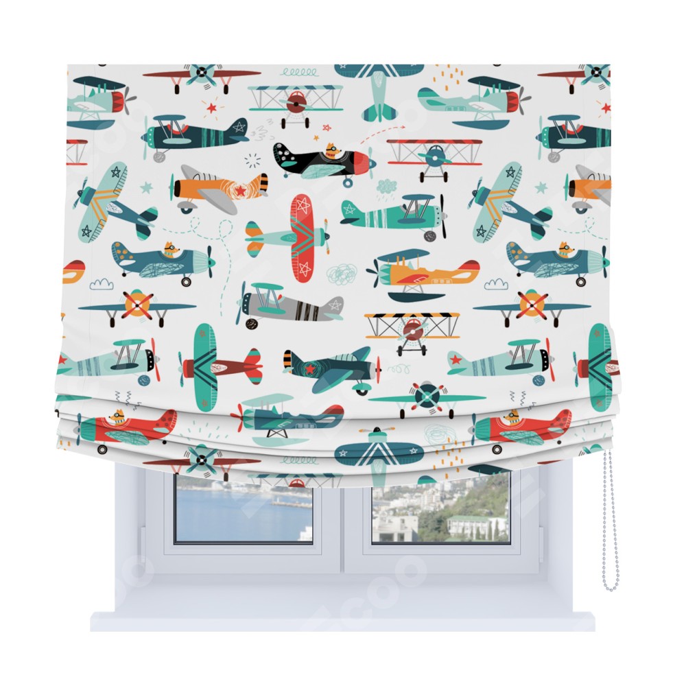 Римская штора Soft с мягкими складками, «Самолёты и пилоты»