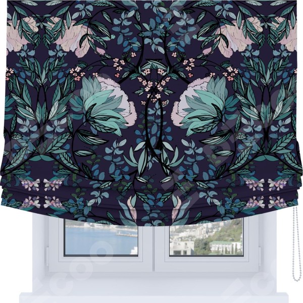 Римская штора Soft производителя «Cortin», используется для проёма, пошита из ткани блэкаут с нанесением сублимационной печати «Цветочный индиго». Имеет универсальный механизм и подходит для монтажа: на потолок, на стену и в нишу. В отличие от стандартных римских штор, римская штора Soft не имеет горизонтальных вставок и нижнего отвеса. Это позволяет ткани произвольно драпироваться в свободные мягкие складки.