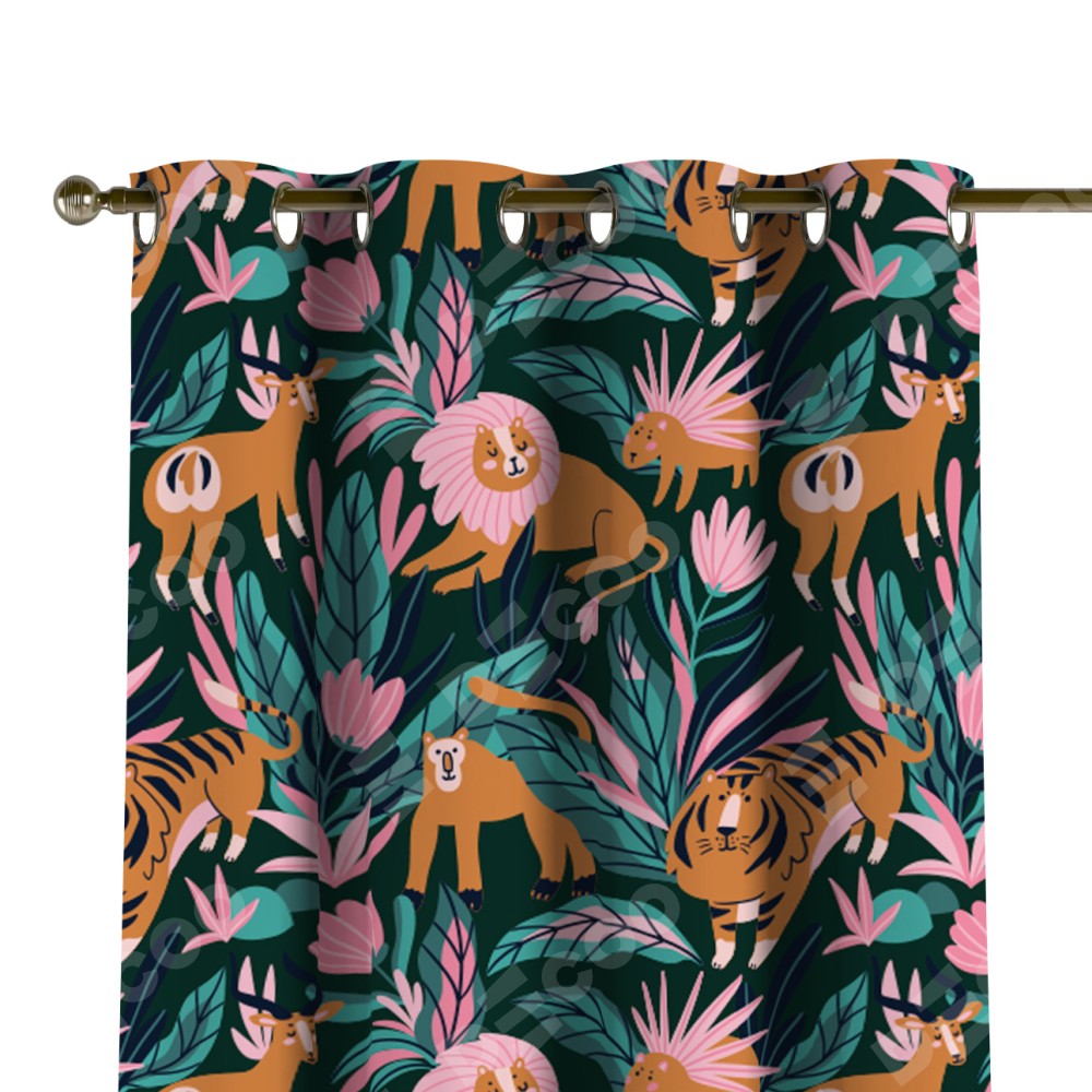 Комплект прямых штор, от производителя «Cortin», пошиты из ткани блэкаут с нанесением сублимационной печати «Дикие животные». Данная модель пошита на люверсах, комплектуется на выбор круглым карнизом и подходит для монтажа на стену или потолок. Прямые шторы на люверсах шьются по стандарту с коэффициентом 1/2 (на 100 см. ширины проёма 200 см. ширины ткани), отличительным преимуществом данной модели является простой способ монтажа. Достаточно повесить ее на трубу и штора готова!