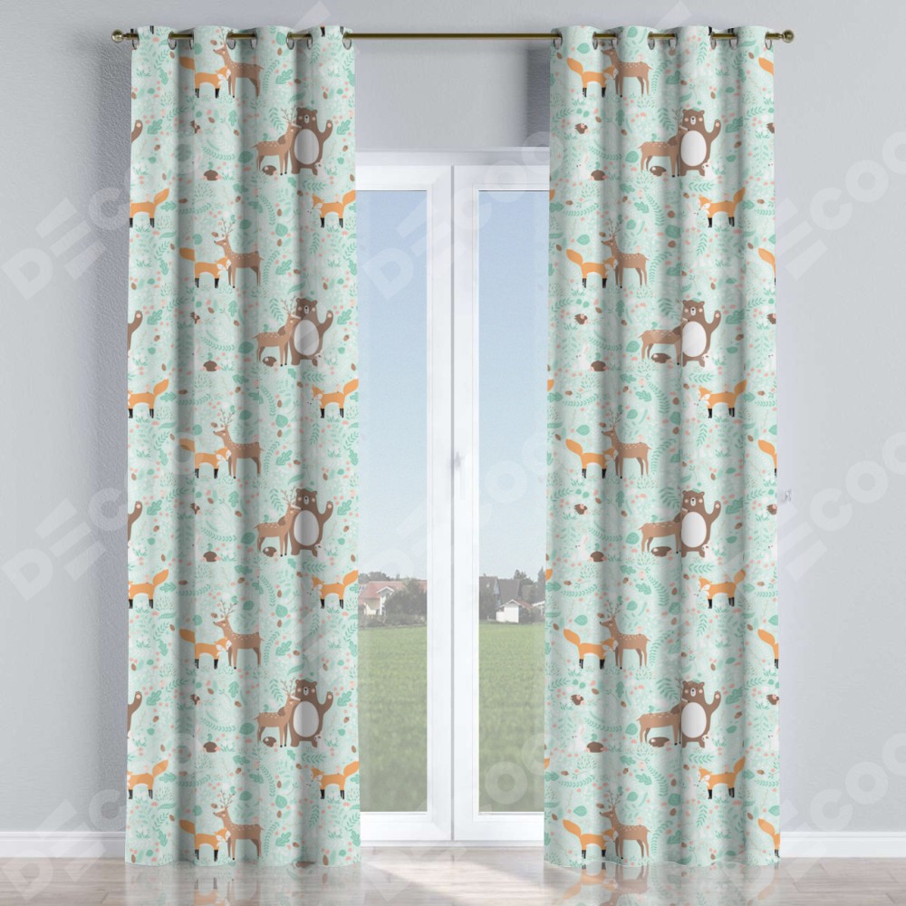 Комплект прямых штор, от производителя «Cortin», пошиты из ткани блэкаут с нанесением сублимационной печати «Лесные друзья». Данная модель пошита на люверсах, комплектуется на выбор круглым карнизом и подходит для монтажа на стену или потолок. Прямые шторы на люверсах шьются по стандарту с коэффициентом 1/2 (на 100 см. ширины проёма 200 см. ширины ткани), отличительным преимуществом данной модели является простой способ монтажа. Достаточно повесить ее на трубу и штора готова!