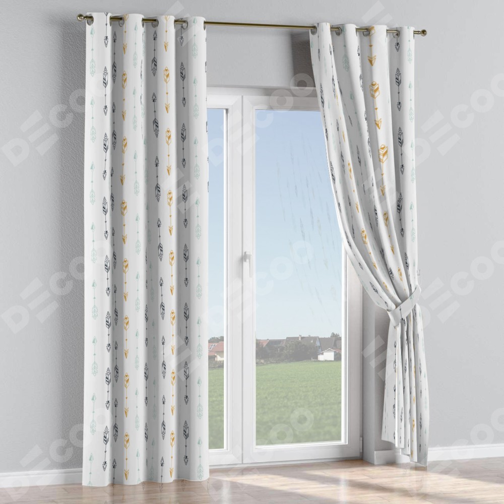 Комплект прямых штор, от производителя «Cortin», пошиты из ткани блэкаут с нанесением сублимационной печати «Любимые стрелки». Данная модель пошита на люверсах, комплектуется на выбор круглым карнизом и подходит для монтажа на стену или потолок. Прямые шторы на люверсах шьются по стандарту с коэффициентом 1/2 (на 100 см. ширины проёма 200 см. ширины ткани), отличительным преимуществом данной модели является простой способ монтажа. Достаточно повесить ее на трубу и штора готова!