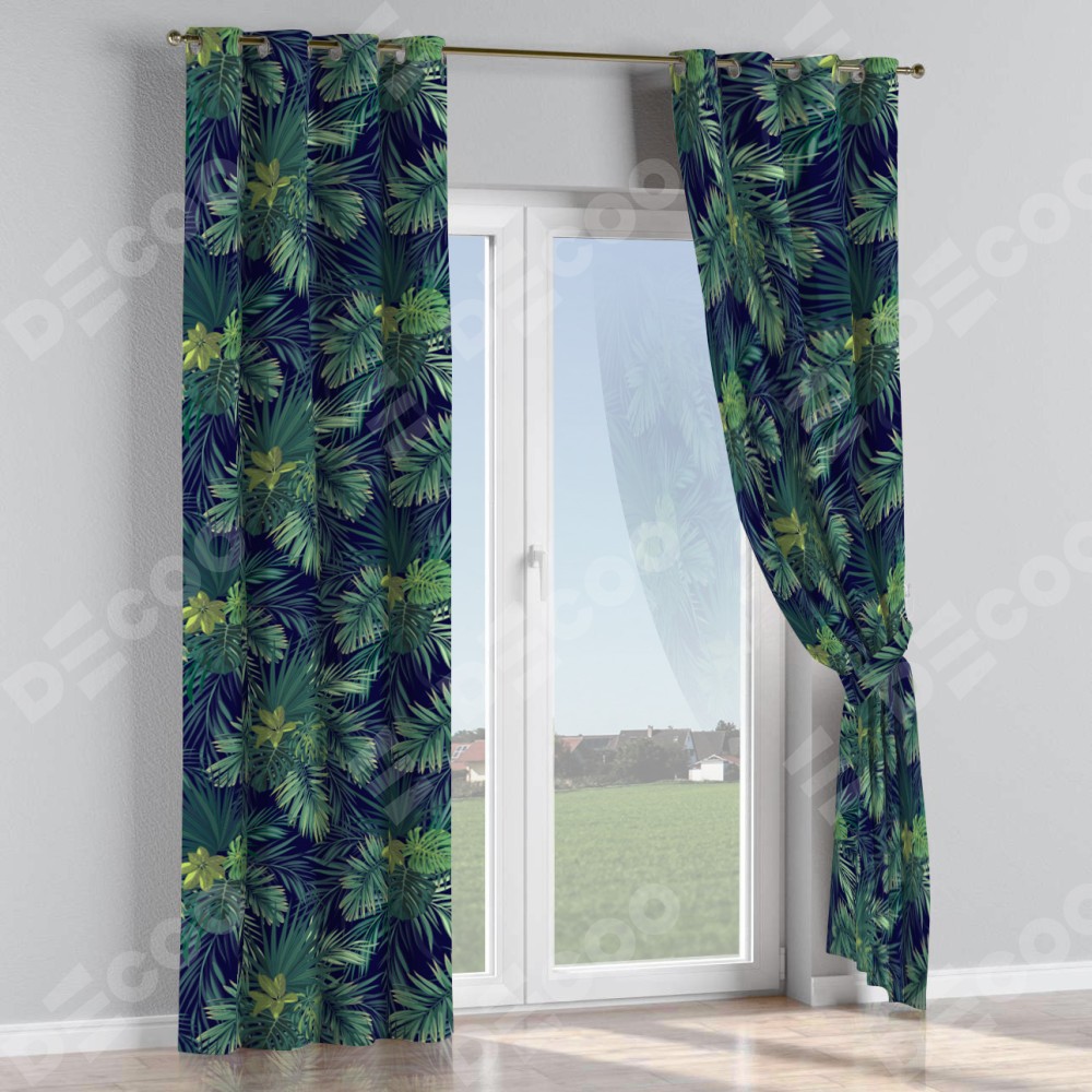 Комплект прямых штор, от производителя «Cortin», пошиты из ткани блэкаут с нанесением сублимационной печати «Пальмовые листья». Данная модель пошита на люверсах, комплектуется на выбор круглым карнизом и подходит для монтажа на стену или потолок. Прямые шторы на люверсах шьются по стандарту с коэффициентом 1/2 (на 100 см. ширины проёма 200 см. ширины ткани), отличительным преимуществом данной модели является простой способ монтажа. Достаточно повесить ее на трубу и штора готова!