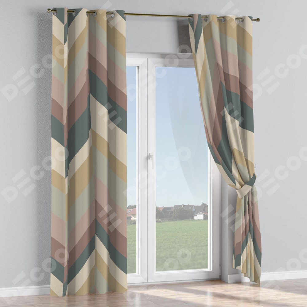 Комплект прямых штор, от производителя «Cortin», пошиты из ткани блэкаут с нанесением сублимационной печати «Шеврон Авеню». Данная модель пошита на люверсах, комплектуется на выбор круглым карнизом и подходит для монтажа на стену или потолок. Прямые шторы на люверсах шьются по стандарту с коэффициентом 1/2 (на 100 см. ширины проёма 200 см. ширины ткани), отличительным преимуществом данной модели является простой способ монтажа. Достаточно повесить ее на трубу и штора готова!
