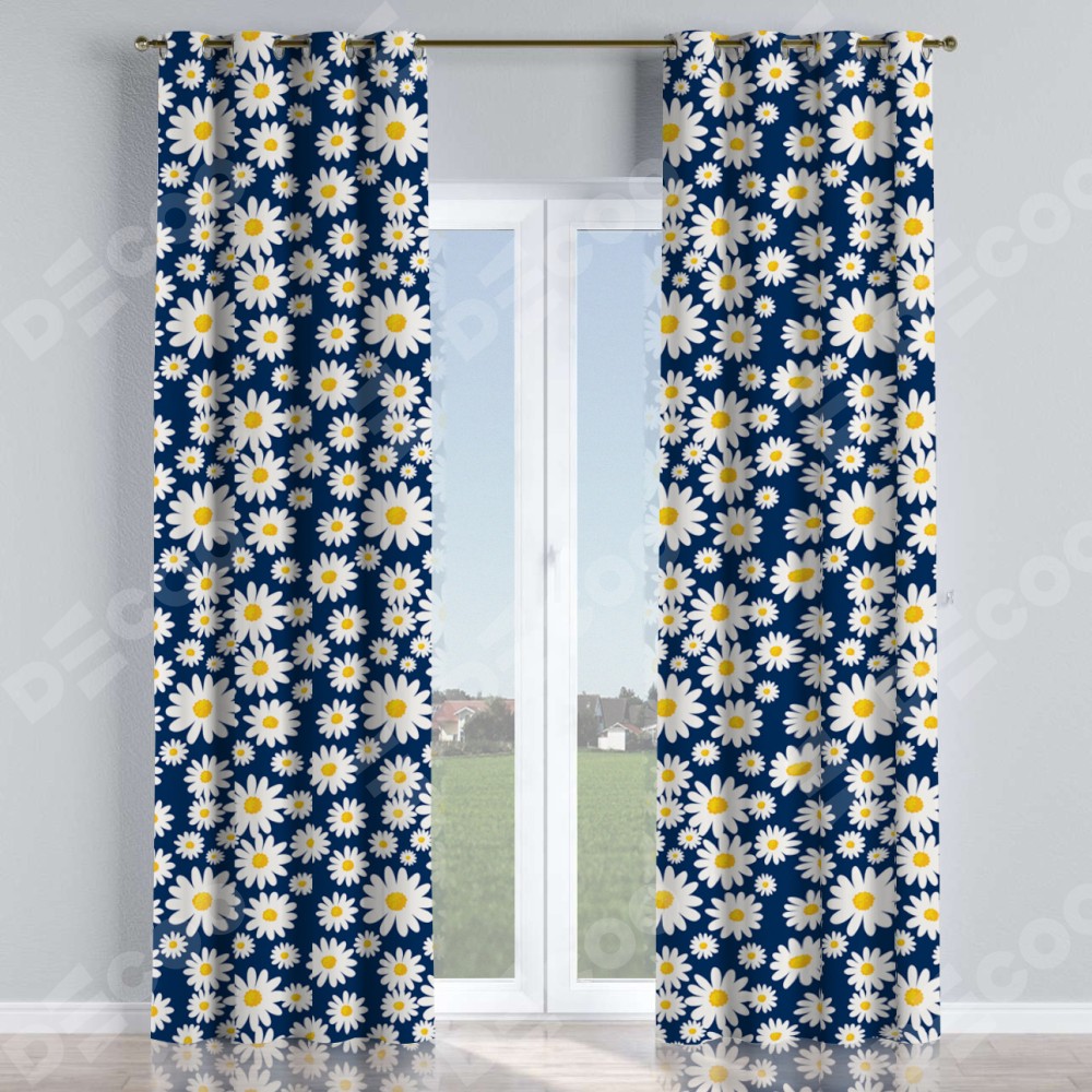 Комплект прямых штор, от производителя «Cortin», пошиты из ткани блэкаут с нанесением сублимационной печати «Яркие ромашки». Данная модель пошита на люверсах, комплектуется на выбор круглым карнизом и подходит для монтажа на стену или потолок. Прямые шторы на люверсах шьются по стандарту с коэффициентом 1/2 (на 100 см. ширины проёма 200 см. ширины ткани), отличительным преимуществом данной модели является простой способ монтажа. Достаточно повесить ее на трубу и штора готова!