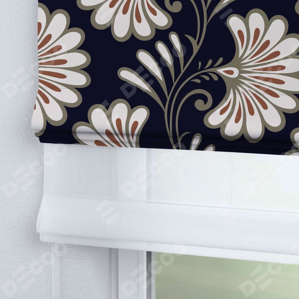 Римская штора день-ночь производителя «Cortin», используется для проёма, пошита из двух полотен, с лицевой блэкаут с нанесением сублимационной печати «Бархатная ночь», вторая ткань тюль (по стандарту комплектуется тюль белого цвета артикул V-01). Имеет универсальный механизм и подходит для монтажа: на потолок, на стену и в нишу.