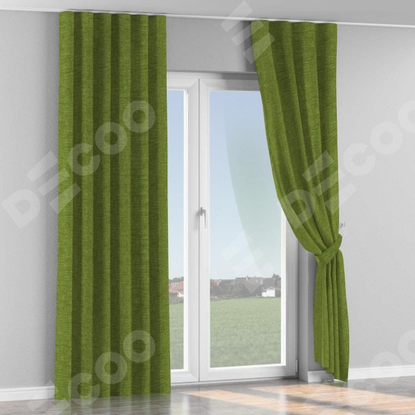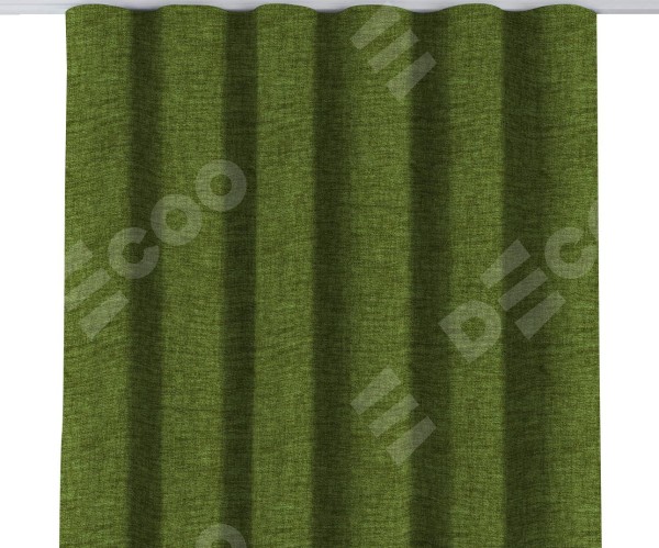 Комплект прямых штор, от производителя «Cortin», пошиты из ткани рогожка димаут салатовый, артикул ткани 80423. С изнаночной стороны в верхней части штор пристрачивается шторная лента с декоративными складками «Волна». Для создания элегантных складок прямые шторы шьются по стандарту с коэффициентом 1:2 (на 100 см. ширины проёма 200 см. ширины ткани).