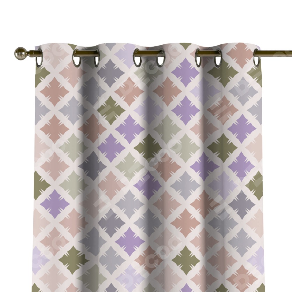 Комплект прямых штор, от производителя «Cortin», пошиты из ткани блэкаут с нанесением сублимационной печати «Фигурные плитки». Данная модель пошита на люверсах, комплектуется на выбор круглым карнизом и подходит для монтажа на стену или потолок. Прямые шторы на люверсах шьются по стандарту с коэффициентом 1/2 (на 100 см. ширины проёма 200 см. ширины ткани), отличительным преимуществом данной модели является простой способ монтажа. Достаточно повесить ее на трубу и штора готова!