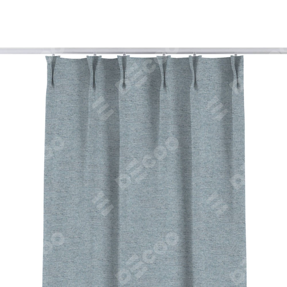 Комплект прямых штор, от производителя «Cortin», пошиты из ткани стиф димаут светло-серый, артикул ткани 44025. С изнаночной стороны в верхней части штор пристрачивается шторная лента с декоративными складками «Кустик». Для создания элегантных складок прямые шторы шьются по стандарту с коэффициентом 1:2 (на 100 см. ширины проёма 200 см. ширины ткани).