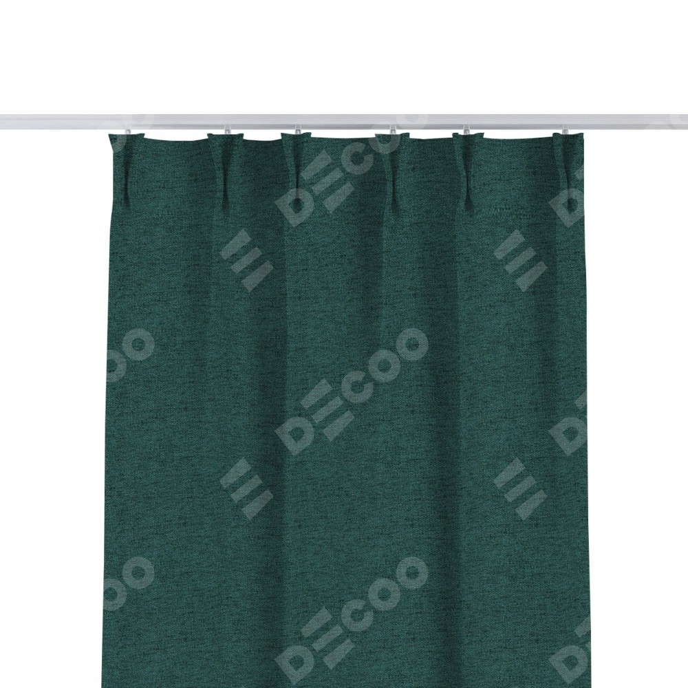 Комплект прямых штор, от производителя «Cortin», пошиты из ткани стиф димаут сине-зелёный, артикул ткани 18194. С изнаночной стороны в верхней части штор пристрачивается шторная лента с декоративными складками «Кустик». Для создания элегантных складок прямые шторы шьются по стандарту с коэффициентом 1:2 (на 100 см. ширины проёма 200 см. ширины ткани).