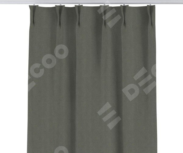 Комплект прямых штор, от производителя «Cortin», пошиты из ткани блэкаут однотонный тёмно-серый, артикул ткани 29332−1. С изнаночной стороны в верхней части штор пристрачивается шторная лента с декоративными складками «Кустик». Для создания элегантных складок прямые шторы шьются по стандарту с коэффициентом 1:2 (на 100 см. ширины проёма 200 см. ширины ткани).