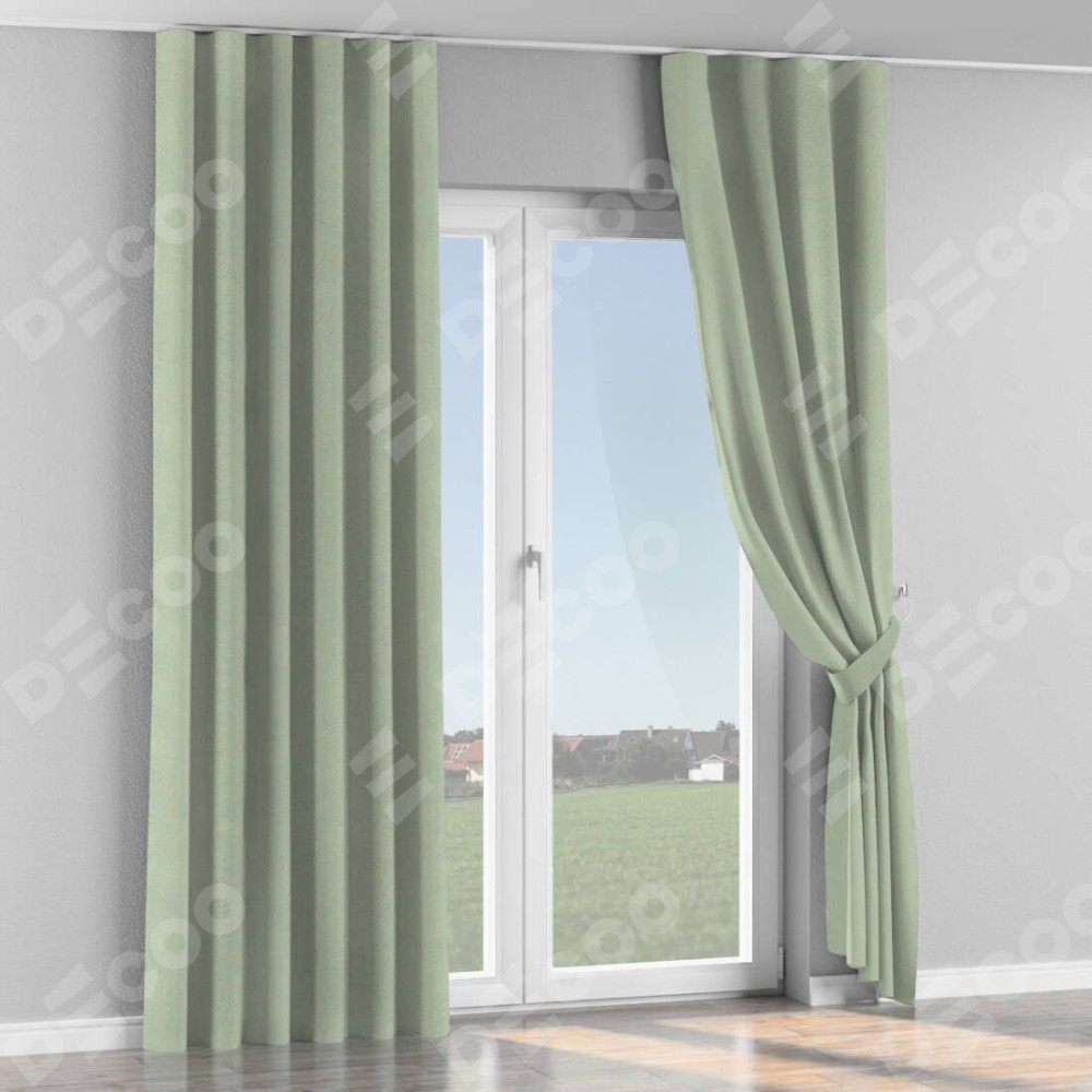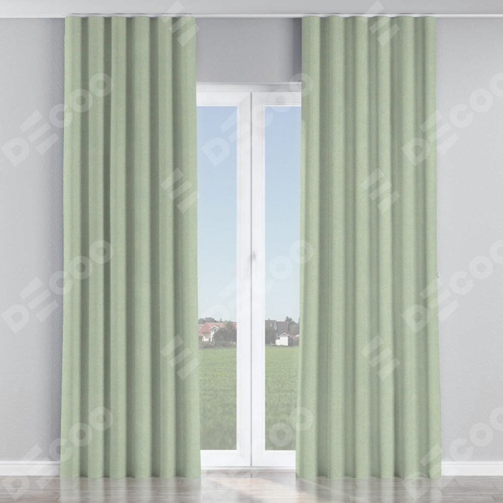 Комплект прямых штор, от производителя «Cortin», пошиты из ткани блэкаут однотонный светло-серый, артикул ткани 29332−2. С изнаночной стороны в верхней части штор пристрачивается шторная лента с декоративными складками «Волна». Для создания элегантных складок прямые шторы шьются по стандарту с коэффициентом 1:2 (на 100 см. ширины проёма 200 см. ширины ткани).