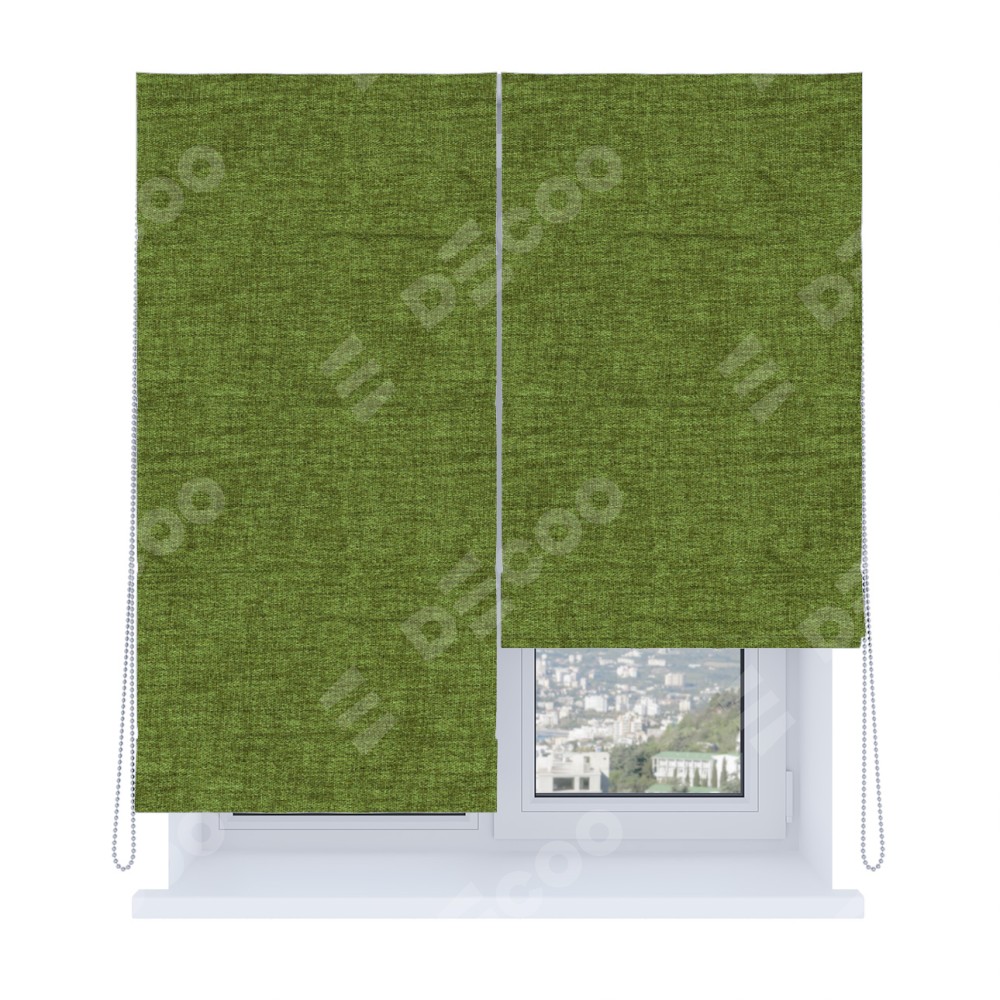 Римская штора производителя «Cortin», используется для проёма, пошита из ткани рогожка димаут салатовый, артикул ткани 80423. Имеет универсальный механизм и подходит для монтажа: на потолок, на стену и в нишу. Удобное управление каждой шторой отдельно.
