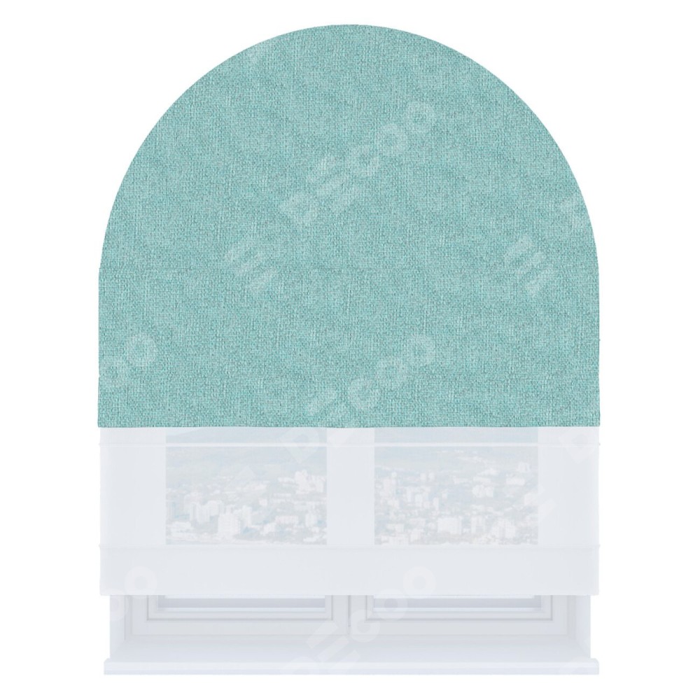 Римская штора день-ночь производителя «Cortin», используется для арочного проёма, пошита из двух полотен, с лицевой стороны лён димаут бирюзовый артикул 23, вторая ткань тюль (по стандарту комплектуется тюль белого цвета артикул V-01). Штора шьётся по индивидуальным размерам, для данного типа римской шторы возможная ширина от 60 до 300 см. Удобное управление каждой шторой отдельно.