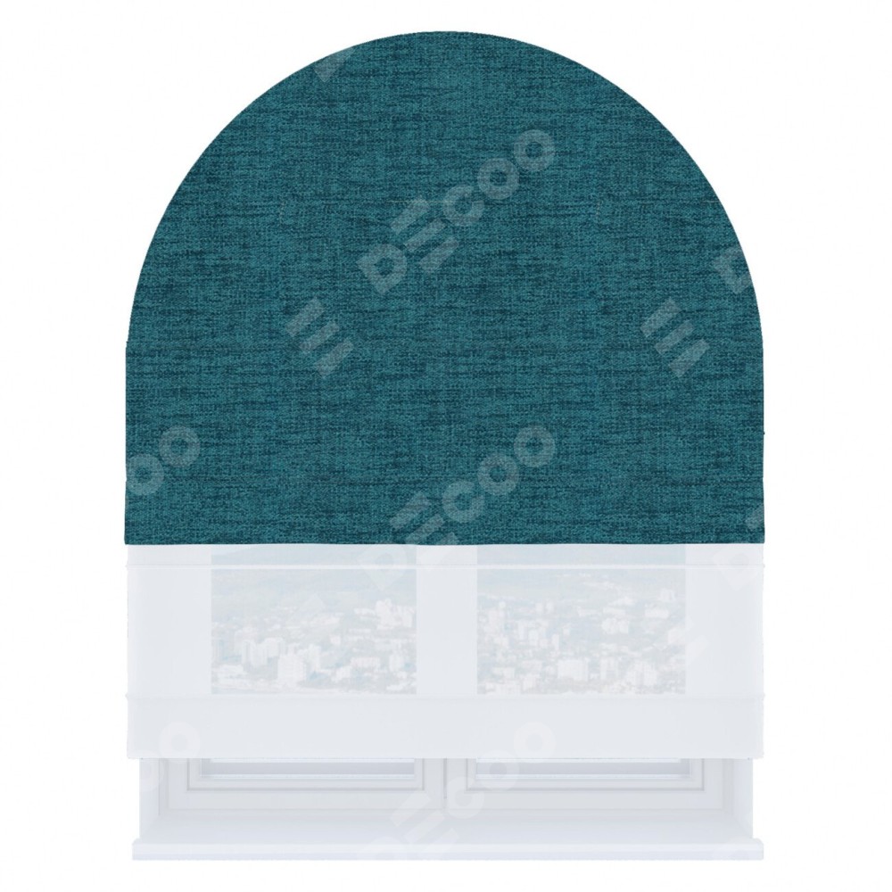 Римская штора день-ночь производителя «Cortin», используется для арочного проёма, пошита из двух полотен, с лицевой стороны рогожка димаут синий артикул 80422, вторая ткань тюль (по стандарту комплектуется тюль белого цвета артикул V-01). Штора шьётся по индивидуальным размерам, для данного типа римской шторы возможная ширина от 60 до 300 см. Удобное управление каждой шторой отдельно.