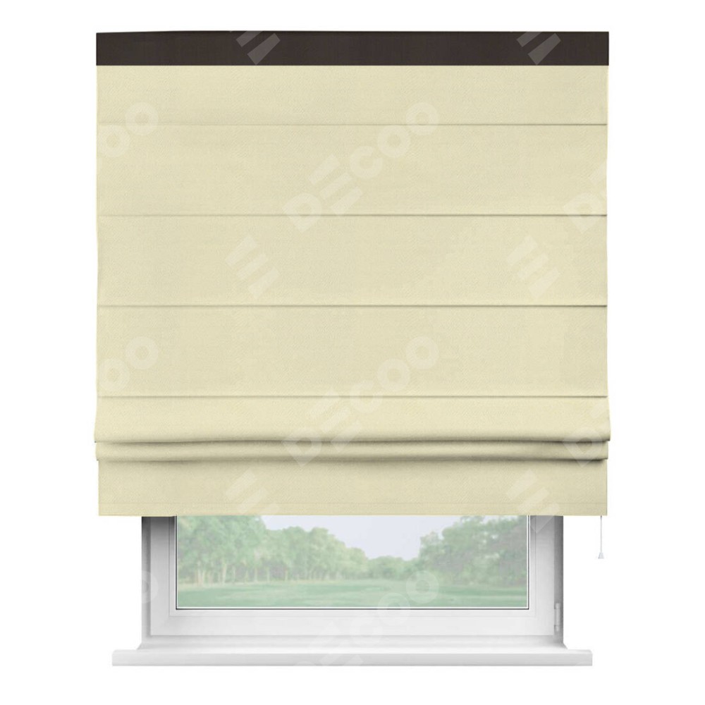 Римская штора производителя «Cortin», используется для проёма, пошита из ткани блэкаут однотонный бежевый, артикул ткани 88283. Отделка шторы кантом «Кинг», ткань для канта используется из блэкаута однотонного разной расцветки на выбор. Имеет универсальный механизм и подходит для монтажа: на потолок, на стену и в нишу.