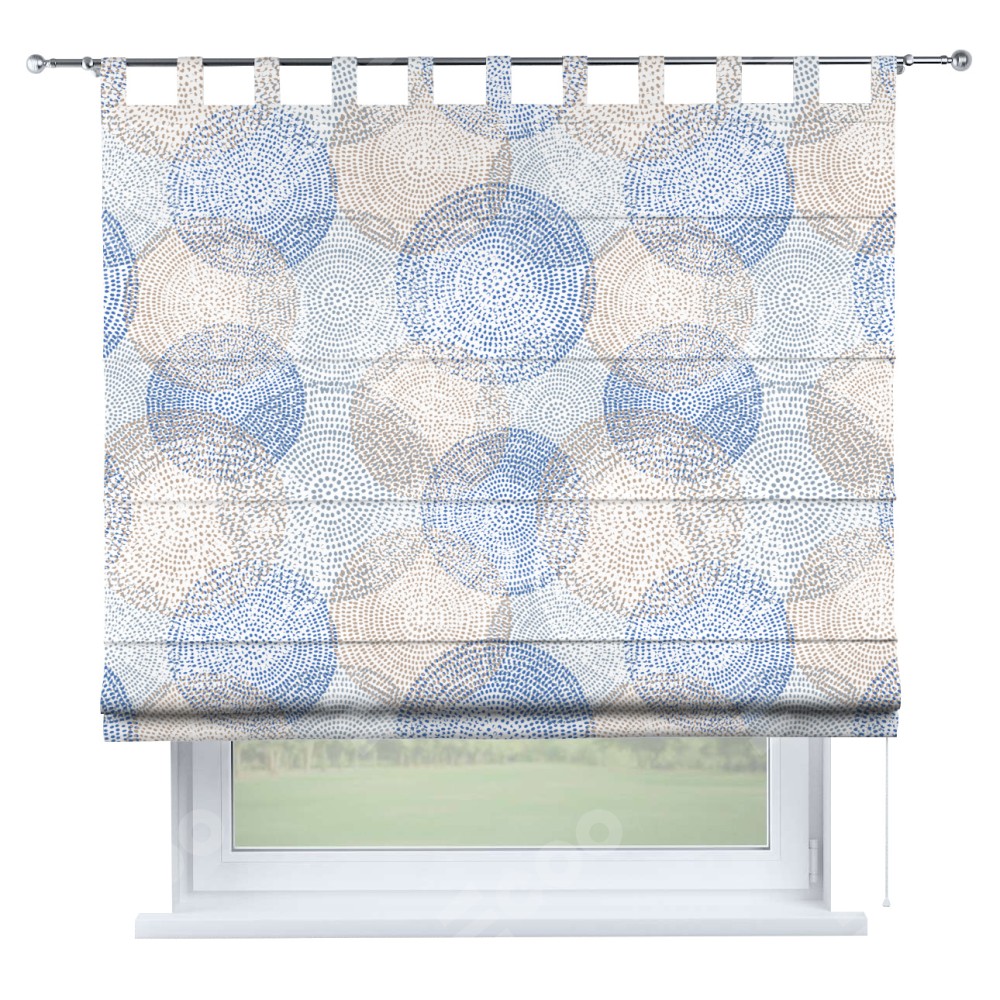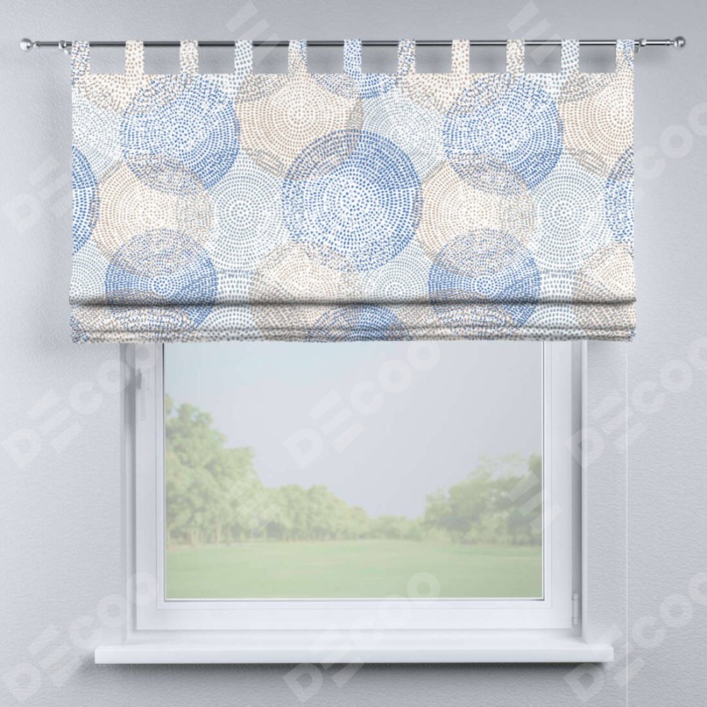 Римская штора производителя «Cortin», используется для проёма, пошита из ткани блэкаут с нанесением сублимационной печати «Абстрактные круги». Данная модель пошита на петлях, комплектуется на выбор круглым карнизом и подходит для монтажа на стену. Римская штора на петлях имеет простую систему регулировки высоты, отличительным преимуществом данной модели является простой способ монтажа. Достаточно повесить ее на трубу и штора готова!