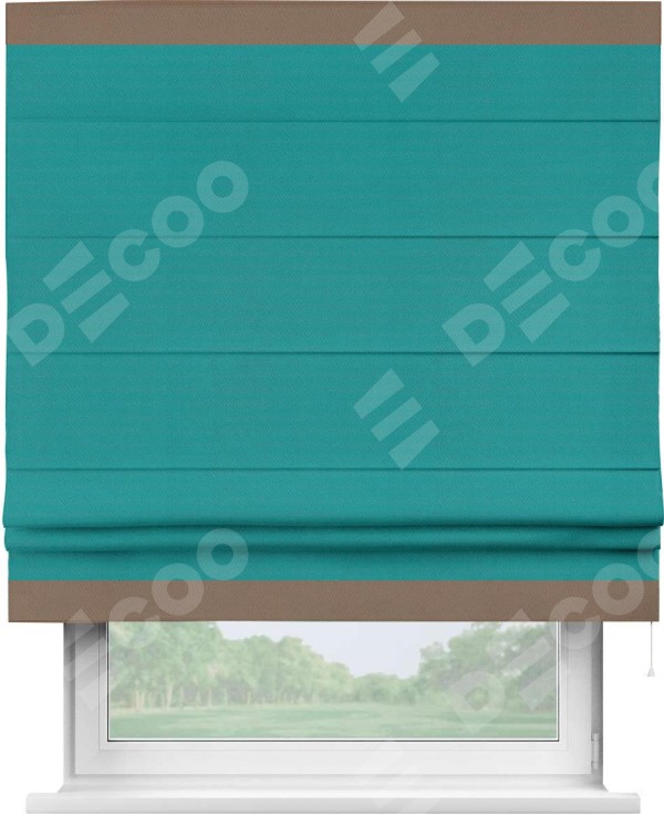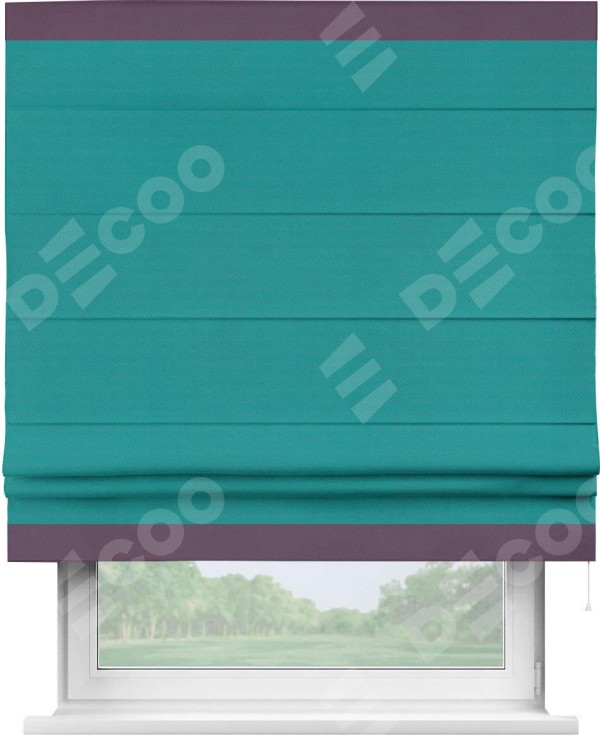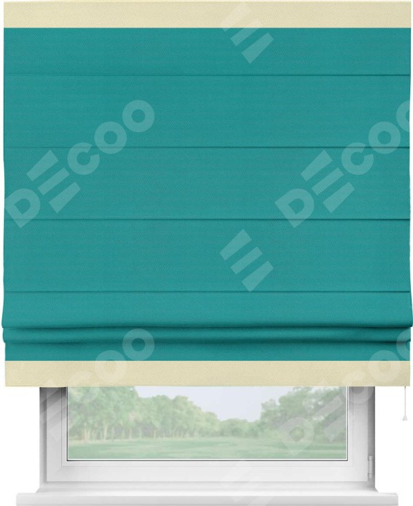 Римская штора «Кортин» с кантом Горизонт, для проема, ткань блэкаут однотонный бирюзовый