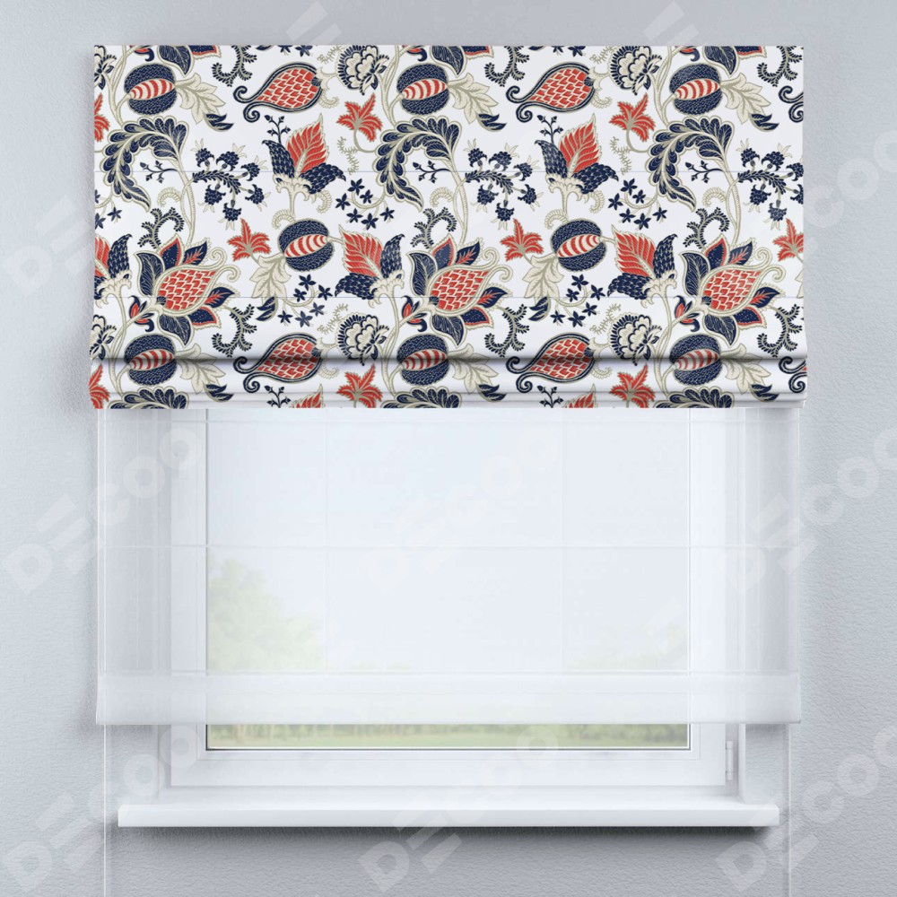 Римская штора день-ночь производителя «Cortin», используется для проёма, пошита из двух полотен, с лицевой блэкаут с нанесением сублимационной печати «Пёстрые цветы», вторая ткань тюль (по стандарту комплектуется тюль белого цвета артикул V-01). Имеет универсальный механизм и подходит для монтажа: на потолок, на стену и в нишу.