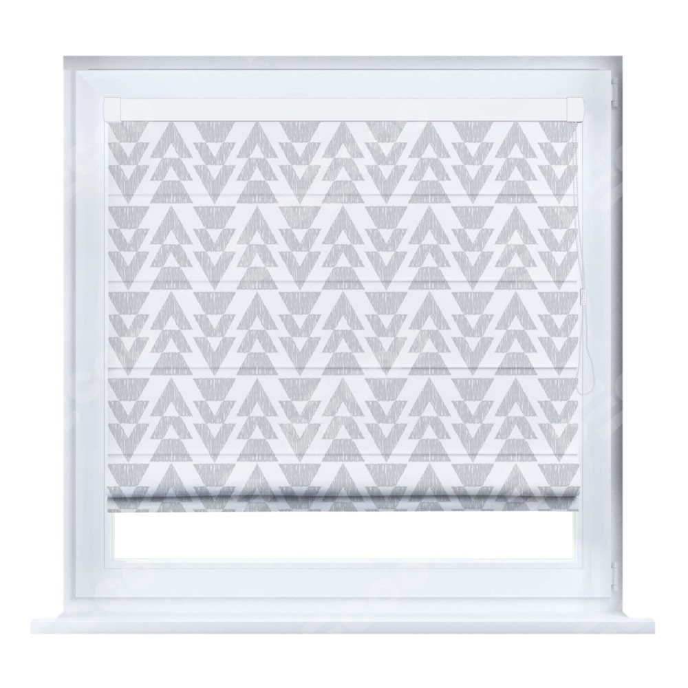 Римская штора производителя «Cortin», устанавливается на створку окна, пошита из ткани блэкаут с нанесением сублимационной печати «Серые стрелки». Штора шьётся по индивидуальным размерам, для данного типа римской шторы возможная ширина от 35 до 150 см., высота до 250 см.