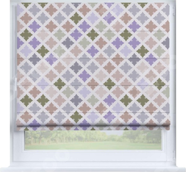 Римская штора производителя «Cortin», устанавливается на створку окна, пошита из ткани блэкаут с нанесением сублимационной печати «Фигурные плитки». Штора шьётся по индивидуальным размерам, для данного типа римской шторы возможная ширина от 35 до 150 см., высота до 250 см.