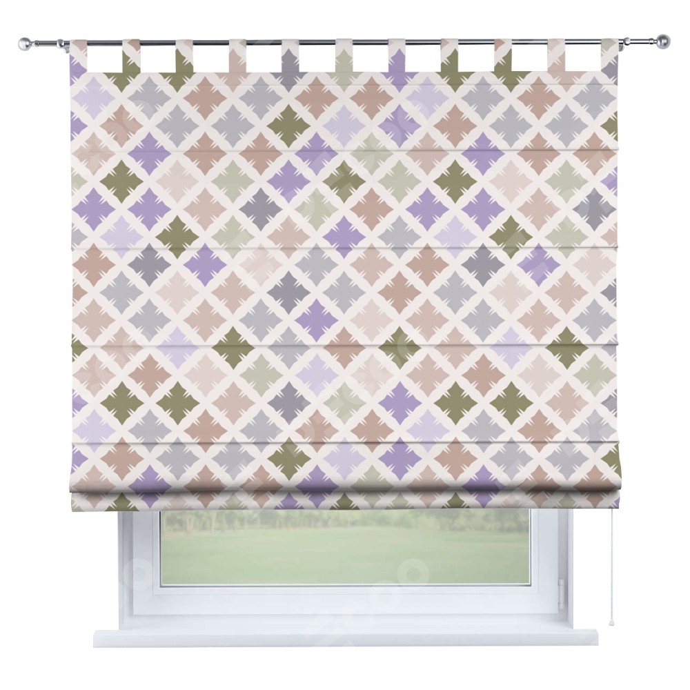 Римская штора производителя «Cortin», используется для проёма, пошита из ткани блэкаут с нанесением сублимационной печати «Фигурные плитки». Данная модель пошита на петлях, комплектуется на выбор круглым карнизом и подходит для монтажа на стену. Римская штора на петлях имеет простую систему регулировки высоты, отличительным преимуществом данной модели является простой способ монтажа. Достаточно повесить ее на трубу и штора готова!