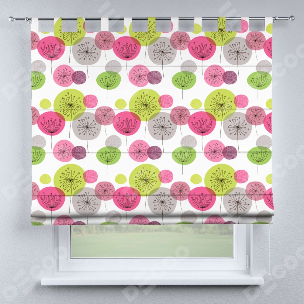 Римская штора производителя «Cortin», используется для проёма, пошита из ткани блэкаут с нанесением сублимационной печати «Цветные одуванчики». Данная модель пошита на петлях, комплектуется на выбор круглым карнизом и подходит для монтажа на стену. Римская штора на петлях имеет простую систему регулировки высоты, отличительным преимуществом данной модели является простой способ монтажа. Достаточно повесить ее на трубу и штора готова!