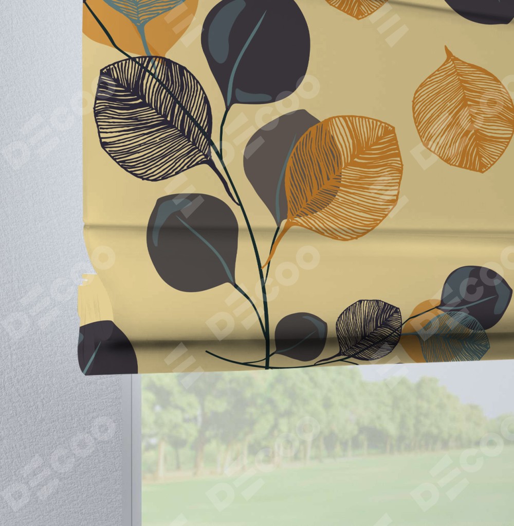 Римская штора производителя «Cortin», используется для проёма, пошита из ткани блэкаут с нанесением сублимационной печати «Листья в янтаре». Данная модель пошита на петлях, комплектуется на выбор круглым карнизом и подходит для монтажа на стену. Римская штора на петлях имеет простую систему регулировки высоты, отличительным преимуществом данной модели является простой способ монтажа. Достаточно повесить ее на трубу и штора готова!