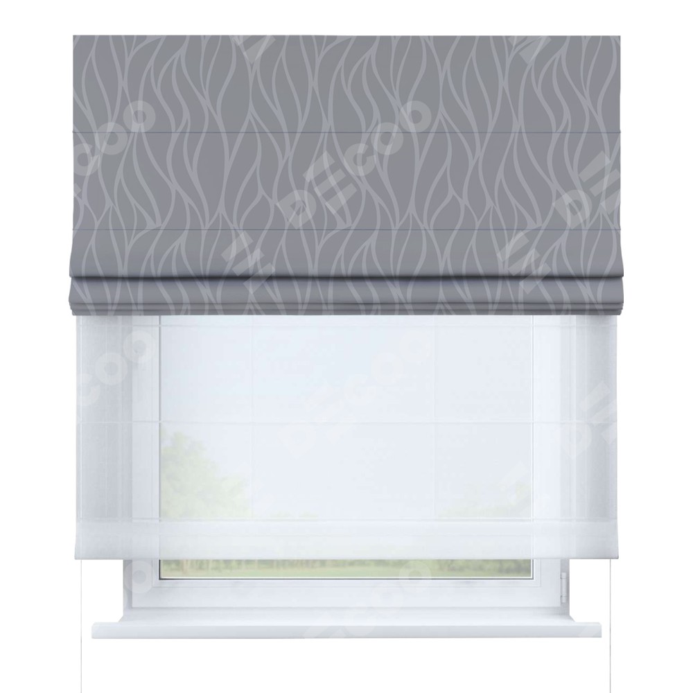 Римская штора день-ночь производителя «Cortin», используется для проёма, пошита из двух полотен, с лицевой блэкаут с нанесением сублимационной печати «Саванна графит», вторая ткань тюль (по стандарту комплектуется тюль белого цвета артикул V-01). Имеет универсальный механизм и подходит для монтажа: на потолок, на стену и в нишу.