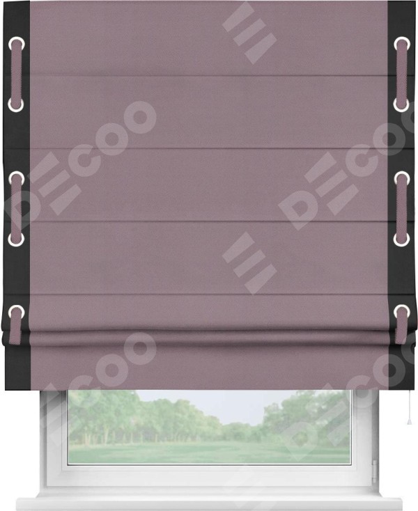 Римская штора «Кортин» с кантом Стрим Дуо (люверсы с пояском), для проема, ткань блэкаут однотонный брусника