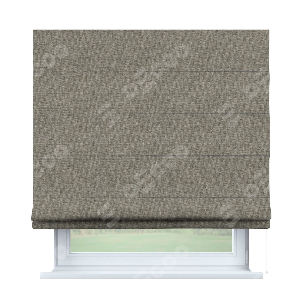 Римская штора производителя «Cortin», используется для проёма, пошита из ткани стиф димаут серо-коричневый, артикул ткани 44028. Имеет универсальный механизм и подходит для монтажа: на потолок, на стену и в нишу.