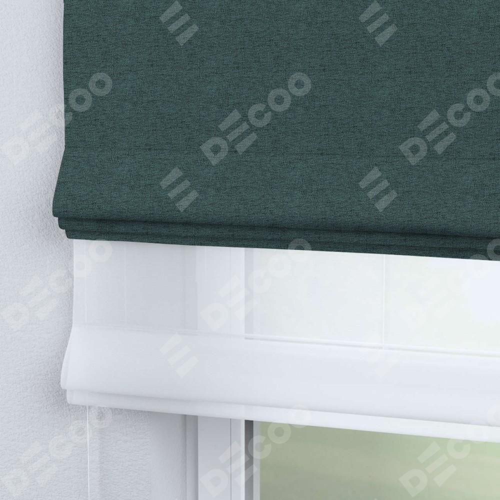 Римская штора день-ночь производителя «Cortin», используется для проёма, пошита из двух полотен, с лицевой стороны стиф димаут сине-зелёный артикул 18194, вторая ткань тюль (по стандарту комплектуется тюль белого цвета артикул V-01). Имеет универсальный механизм и подходит для монтажа: на потолок, на стену и в нишу.