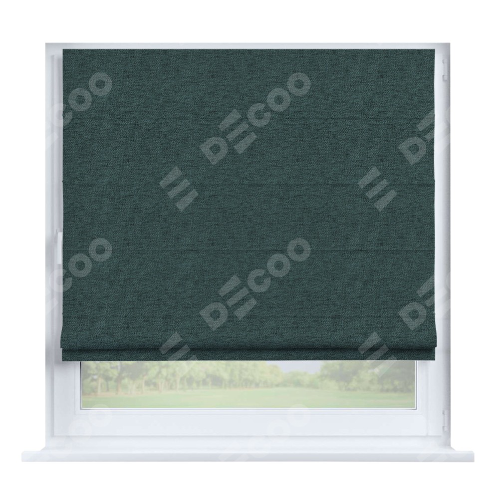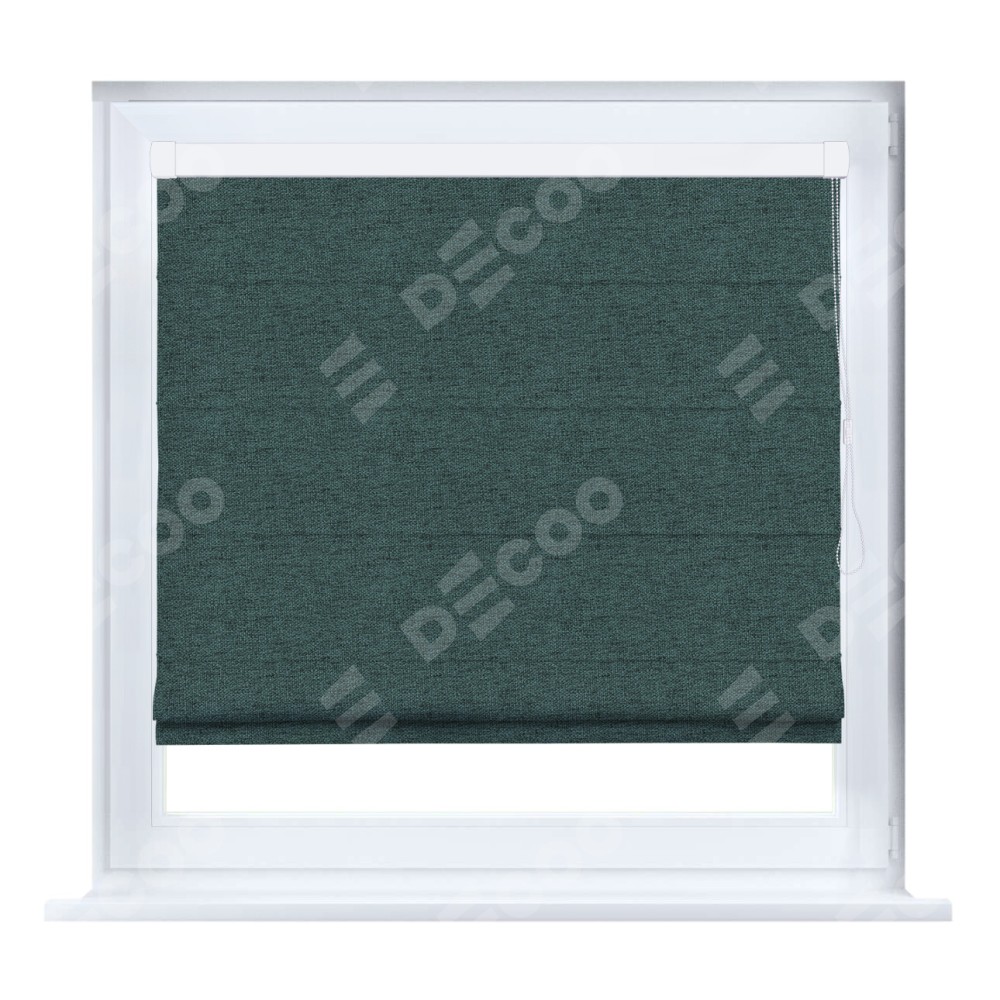 Римская штора производителя «Cortin», устанавливается на створку окна, пошита из ткани стиф димаут сине-зелёный, артикул 18194. Штора шьётся по индивидуальным размерам, для данного типа римской шторы возможная ширина от 35 до 150 см., высота до 250 см.