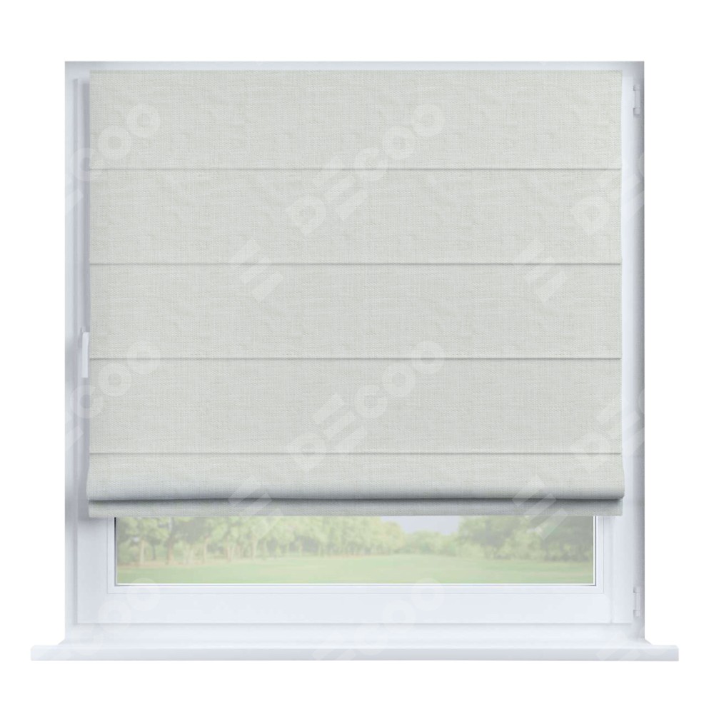 Римская штора производителя «Cortin», устанавливается на створку окна, пошита из ткани лён молочный, артикул 23568. Штора шьётся по индивидуальным размерам, для данного типа римской шторы возможная ширина от 35 до 150 см., высота до 250 см.