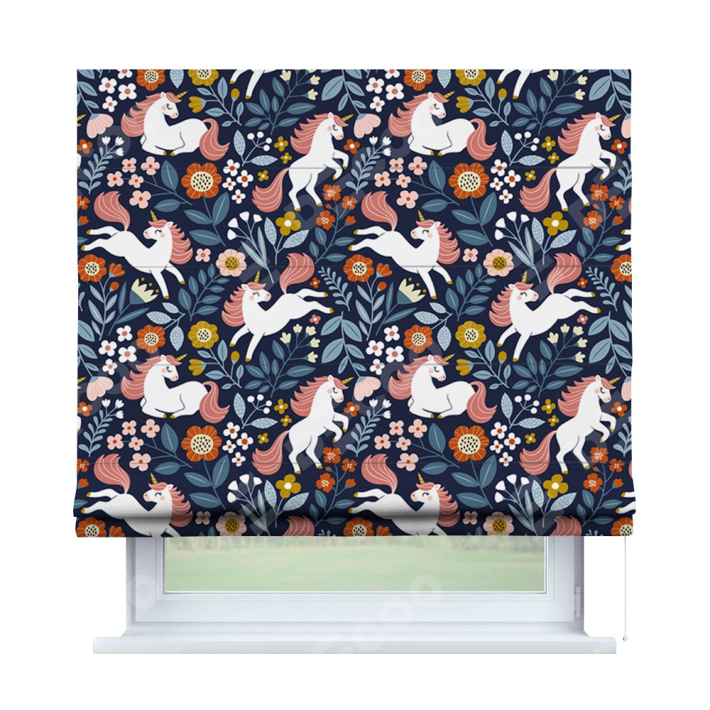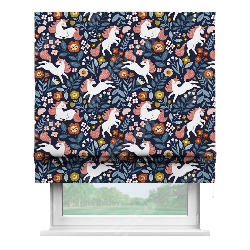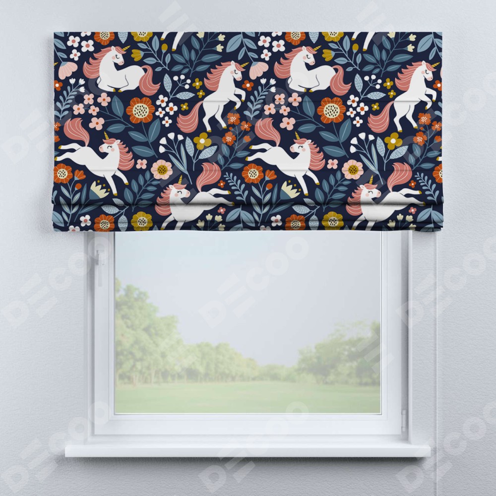 Римская штора «Кортин» для проема «Цветы и единороги»