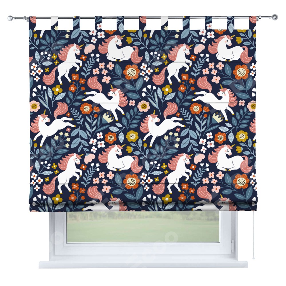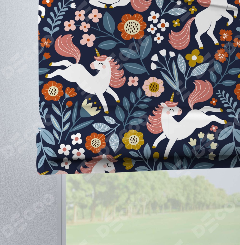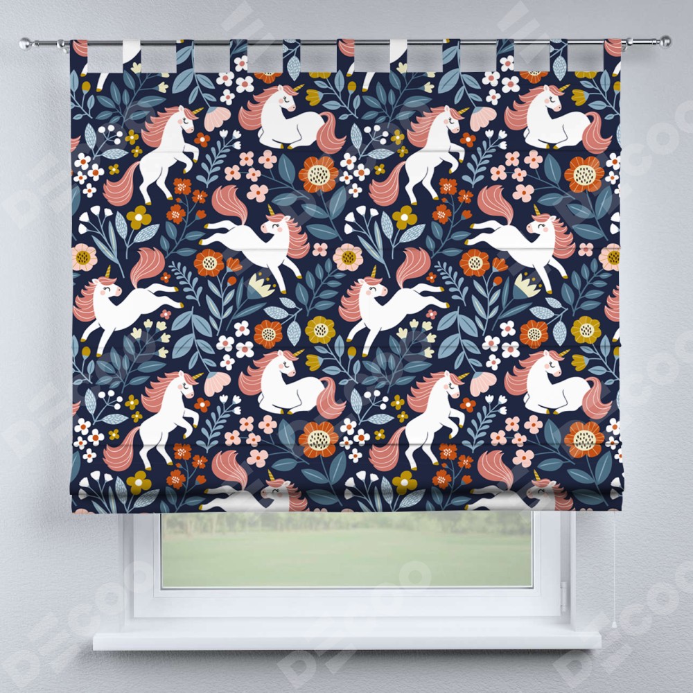 Римская штора на петлях «Цветы и единороги»