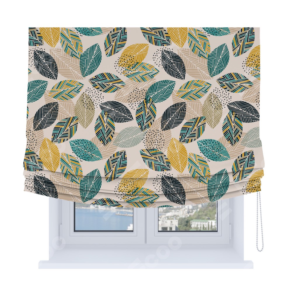Римская штора Soft с мягкими складками, «Листья с орнаментом»