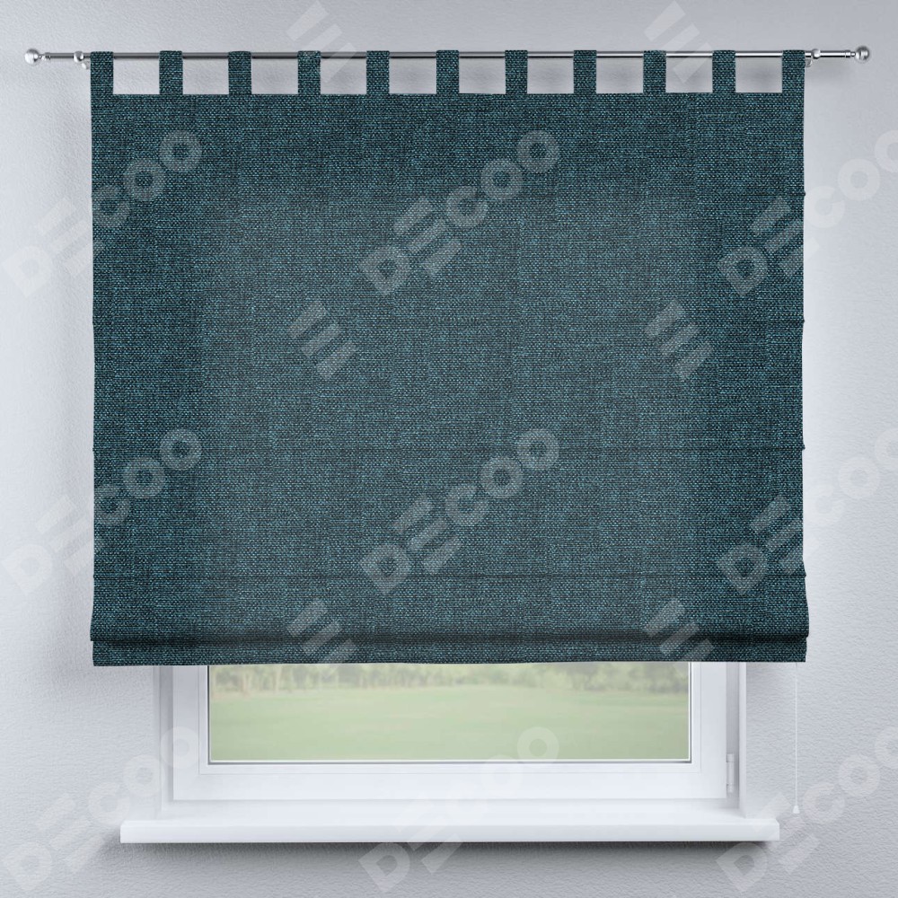 Римская штора производителя «Cortin», используется для проёма, пошита из ткани лён кашемир синий, артикул ткани 21623. Данная модель пошита на петлях, комплектуется на выбор круглым карнизом и подходит для монтажа на стену. Римская штора на петлях имеет простую систему регулировки высоты, отличительным преимуществом данной модели является простой способ монтажа. Достаточно повесить ее на трубу и штора готова!