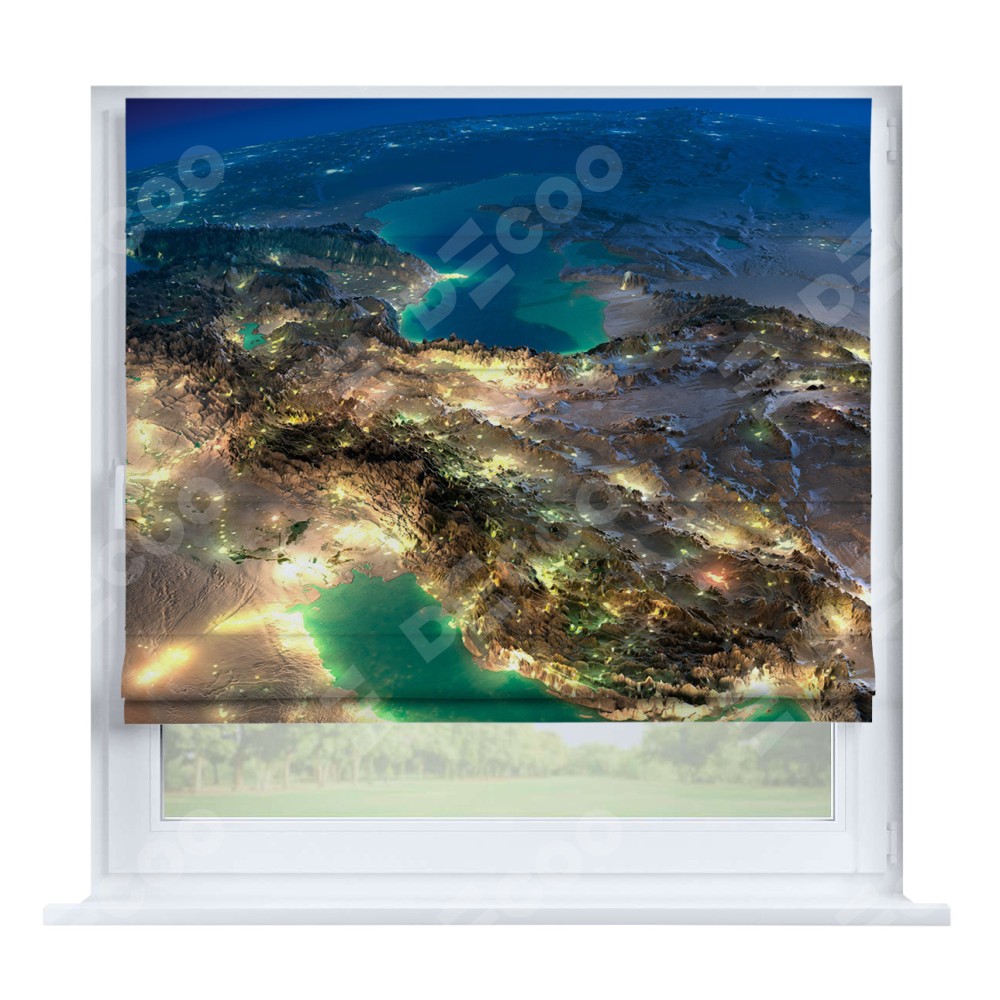 Римская штора производителя «Cortin», устанавливается на створку окна, пошита из ткани блэкаут с нанесением сублимационной печати «Ночные огни». Штора шьётся по индивидуальным размерам, для данного типа римской шторы возможная ширина от 35 до 150 см., высота до 250 см.