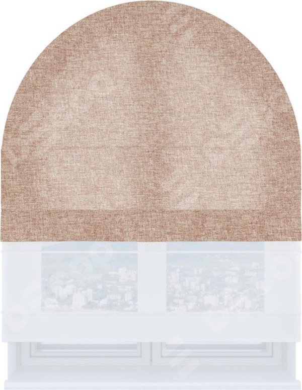 Римская штора день-ночь производителя «Cortin», используется для арочного проёма, пошита из двух полотен, с лицевой стороны лён кашемир розовая пудра артикул 21619, вторая ткань тюль (по стандарту комплектуется тюль белого цвета артикул V-01). Штора шьётся по индивидуальным размерам, для данного типа римской шторы возможная ширина от 60 до 300 см. Удобное управление каждой шторой отдельно.
