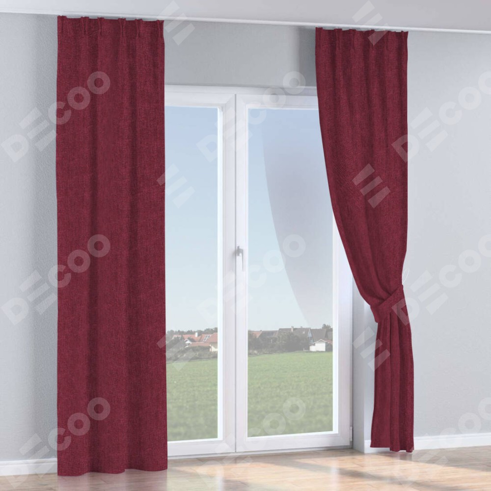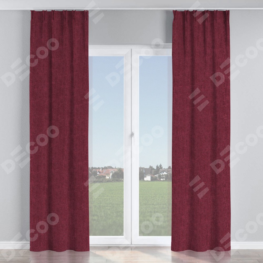 Комплект прямых штор, от производителя «Cortin», пошиты из ткани лён кашемир бордовый, артикул ткани 21621. С изнаночной стороны в верхней части штор пристрачивается шторная лента с декоративными складками «Кустик». Для создания элегантных складок прямые шторы шьются по стандарту с коэффициентом 1:2 (на 100 см. ширины проёма 200 см. ширины ткани).