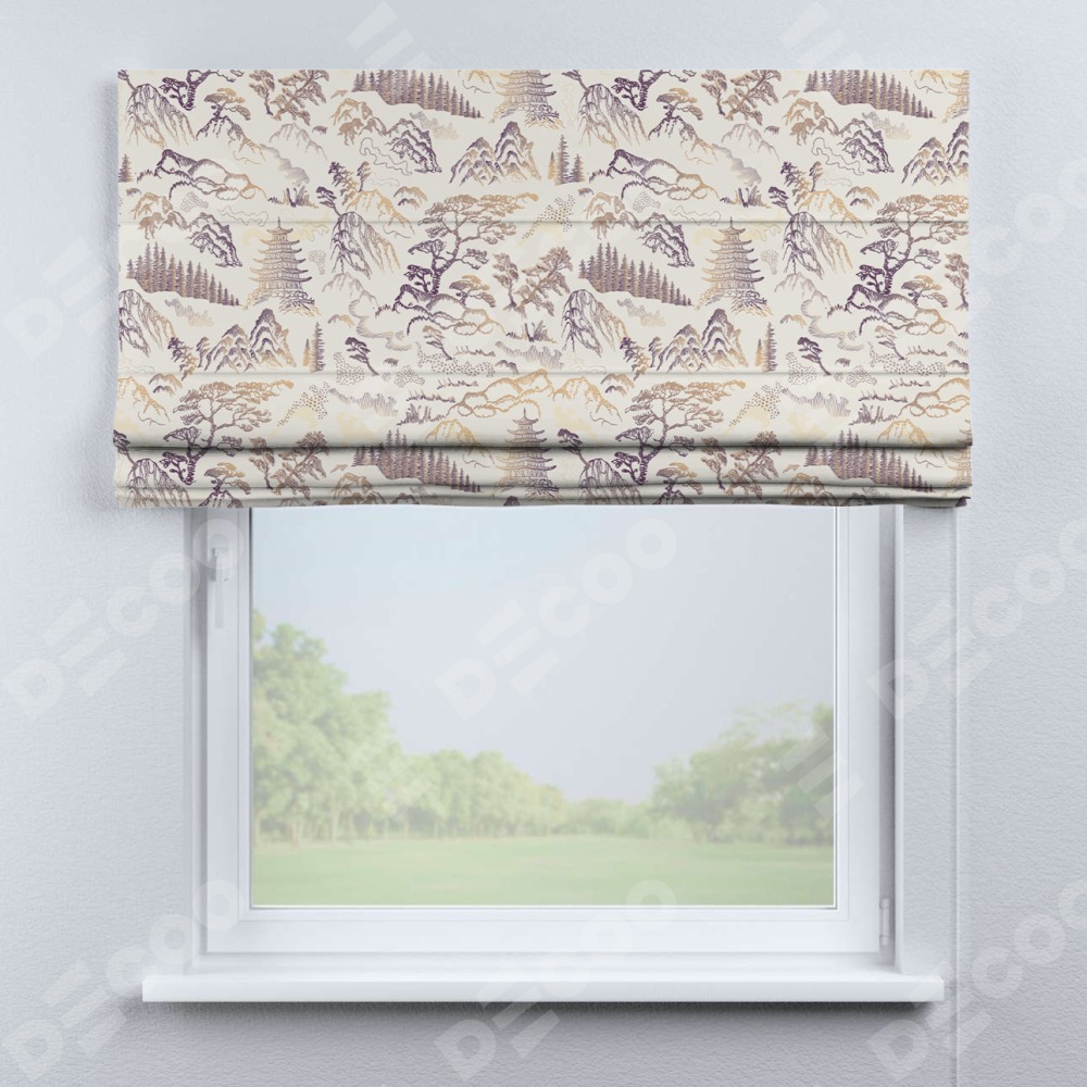 Римская штора производителя «Cortin», используется для проёма, пошита из ткани блэкаут с нанесением сублимационной печати «Горные вершины». Имеет универсальный механизм и подходит для монтажа: на потолок, на стену и в нишу.
