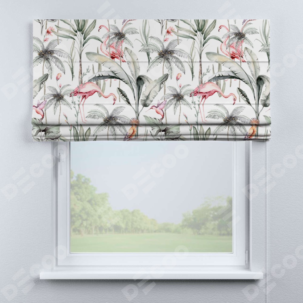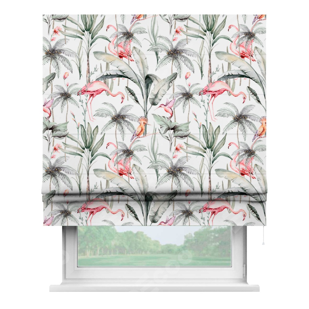 Римская штора «Кортин» для проема «Изящные фламинго»