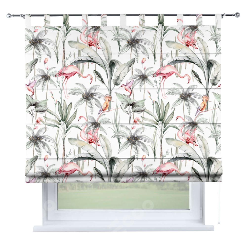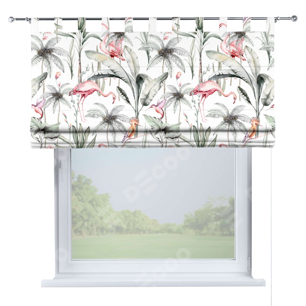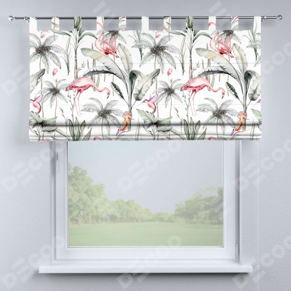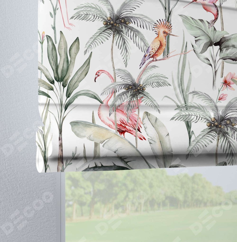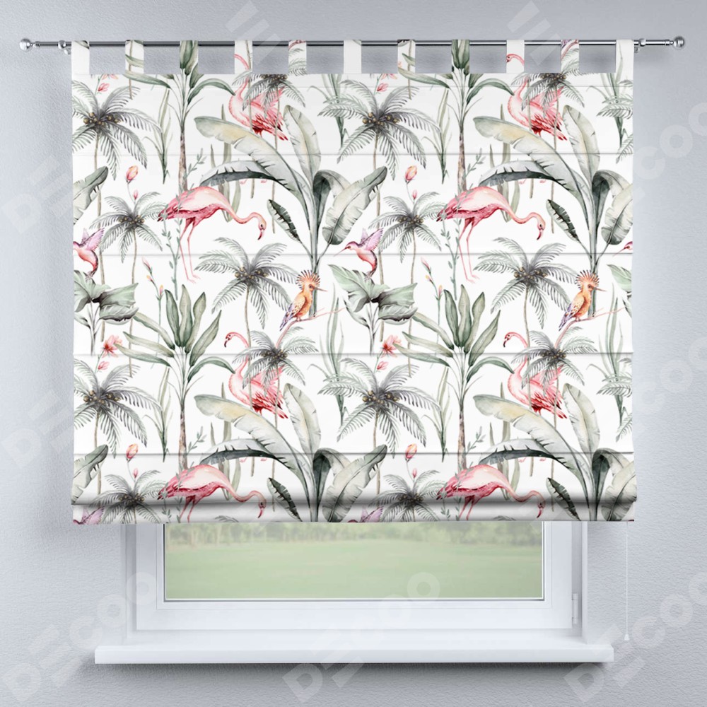 Римская штора производителя «Cortin», используется для проёма, пошита из ткани блэкаут с нанесением сублимационной печати «Изящные фламинго». Данная модель пошита на петлях, комплектуется на выбор круглым карнизом и подходит для монтажа на стену. Римская штора на петлях имеет простую систему регулировки высоты, отличительным преимуществом данной модели является простой способ монтажа. Достаточно повесить ее на трубу и штора готова!