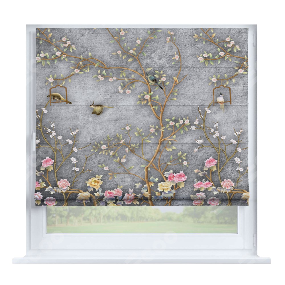 Римская штора производителя «Cortin», устанавливается на створку окна, пошита из ткани блэкаут с нанесением сублимационной печати «Прелестный сад». Штора шьётся по индивидуальным размерам, для данного типа римской шторы возможная ширина от 35 до 150 см., высота до 250 см.