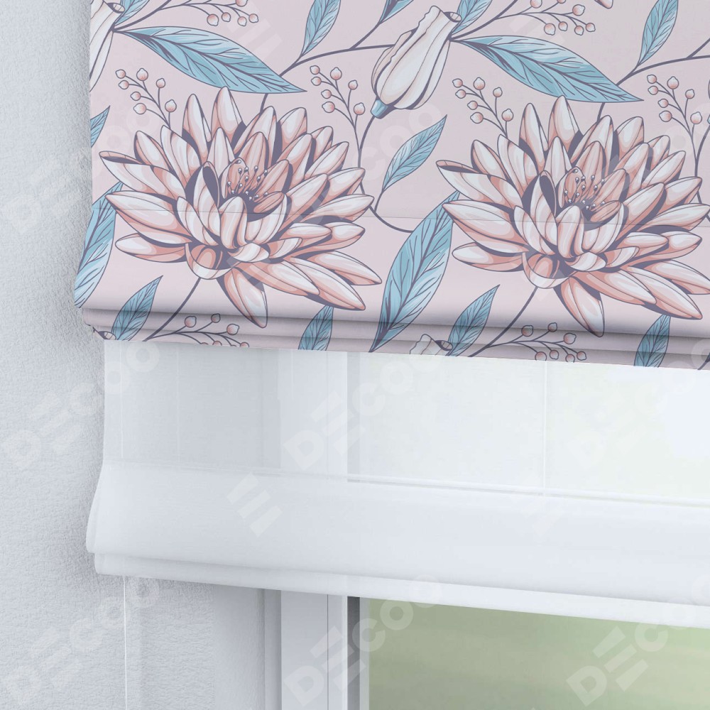 Римская штора день-ночь производителя «Cortin», используется для проёма, пошита из двух полотен, с лицевой блэкаут с нанесением сублимационной печати «Романтический день», вторая ткань тюль (по стандарту комплектуется тюль белого цвета артикул V-01). Имеет универсальный механизм и подходит для монтажа: на потолок, на стену и в нишу.