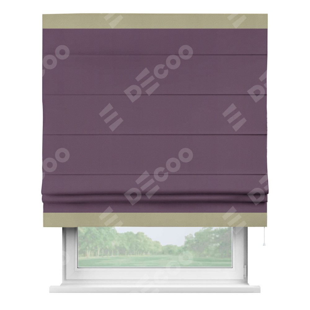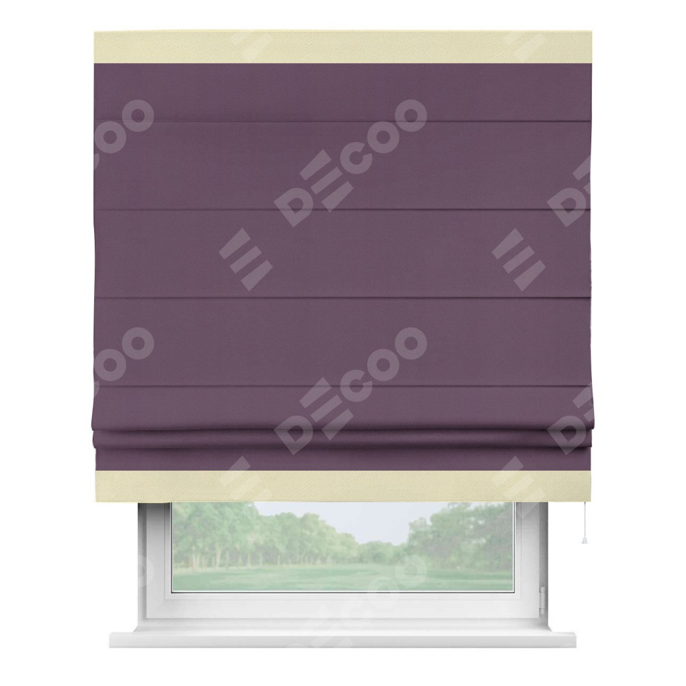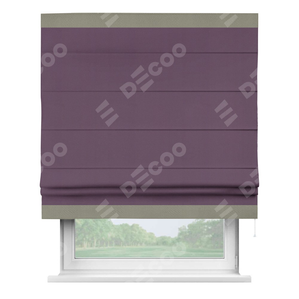 Римская штора производителя «Cortin», используется для проёма, пошита из ткани блэкаут однотонный фуксия, артикул ткани 88303. Отделка шторы кантом «Горизонт», ткань для канта используется из блэкаута однотонного разной расцветки на выбор. Имеет универсальный механизм и подходит для монтажа: на потолок, на стену и в нишу.