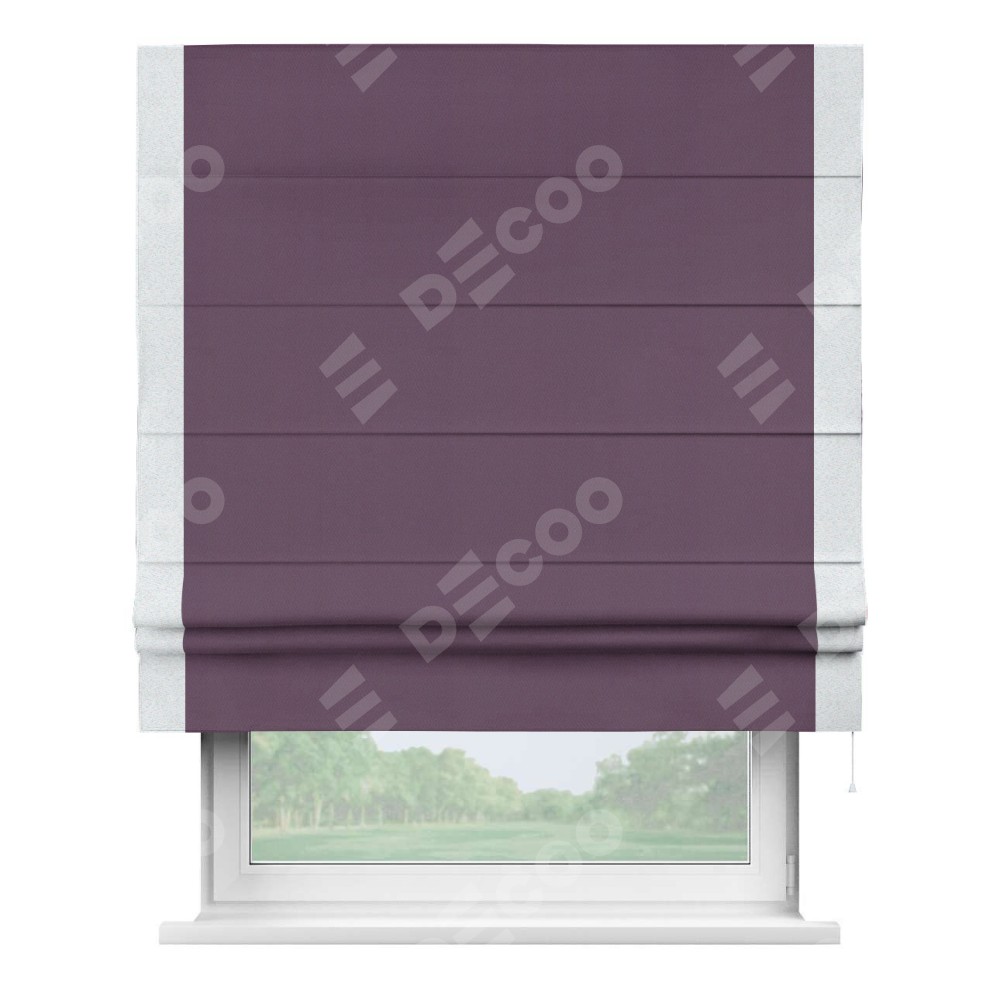 Римская штора производителя «Cortin», используется для проёма, пошита из ткани блэкаут однотонный фуксия, артикул ткани 88303. Отделка шторы кантом «Стрим Дуо», ткань для канта используется из блэкаута однотонного разной расцветки на выбор. Имеет универсальный механизм и подходит для монтажа: на потолок, на стену и в нишу.