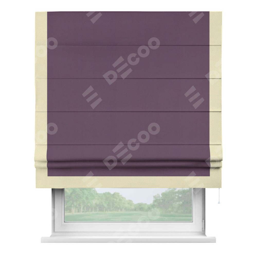 Римская штора производителя «Cortin», используется для проёма, пошита из ткани блэкаут однотонный фуксия, артикул ткани 88303. Отделка шторы кантом «Виктория», ткань для канта используется из блэкаута однотонного разной расцветки на выбор. Имеет универсальный механизм и подходит для монтажа: на потолок, на стену и в нишу.