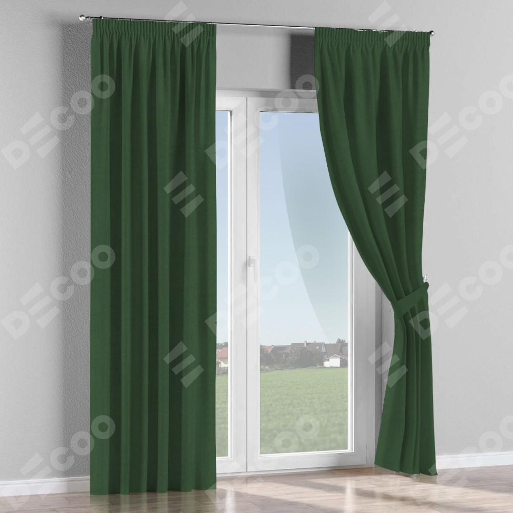 Комплект штор на тесьме «Карандаш», лён блэкаут зелёный