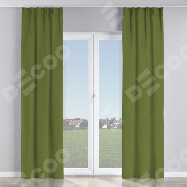 Комплект прямых штор, от производителя «Cortin», пошиты из ткани лён блэкаут оливковый, артикул ткани 69516. С изнаночной стороны в верхней части штор пристрачивается шторная лента с декоративными складками «Кустик». Для создания элегантных складок прямые шторы шьются по стандарту с коэффициентом 1:2 (на 100 см. ширины проёма 200 см. ширины ткани).